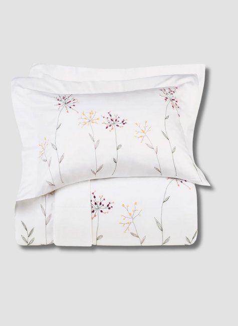 Um toque de poesia para o quarto. O Jogo de Colcha Anise encanta com seu bordado floral delicado, posicionado de forma estratégica no caimento da peseira, criando um efeito visual suave e acolhedor. Os porta-travesseiros coordenados trazem o mesmo bordado em destaque, com acabamento refinado em 3 abas de 8cm e enchimento macio.
