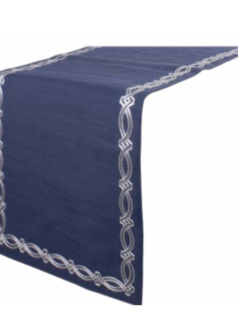 Seu tom azul profundo, combinado com os bordados em branco, cria uma harmonia visual que transforma qualquer refeição em um evento especial. Ideal para ocasiões formais ou para dar um toque refinado ao seu dia a dia, este caminho de mesa é a união perfeita entre beleza e estilo.