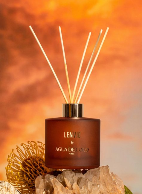 O Difusor de Perfume Terra do Sol 200ml, em [collab com a Água de Coco] https://www.lenvieparfums.com/agua-de-coco), traduz com autenticidade o estilo de vida brasileiro e solar, levando a energia do verão para dentro de casa 365 dias no ano. Sua fragrância envolvente combina a luminosidade da Bergamota e o toque especiado da Noz Moscada com a delicadeza da Peônia e da Magnólia. Finalizada com a sofisticação do Musk e do Guaiaco, essa experiência olfativa traz frescor e leveza para o seu dia a dia.