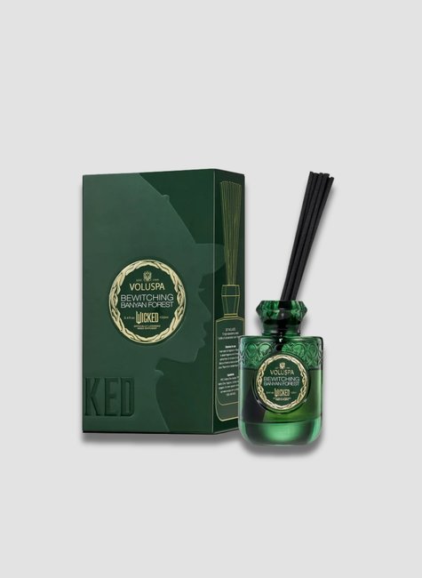 Crie sua própria mágica. Deixe o ambiente brilhar com uma fragrância amadeirada quente que desafia a gravidade. Descubra o desconhecido com notas hipnóticas da Floresta Fosforescente de Elphaba, entrelaçadas com galhos de Figueira-de-Bengala (Banyan Tree) e uma luz quente e brilhante de Âmbar. Envolva seu espaço em um elixir verde que libertará seu espírito para descobrir o poder interior.