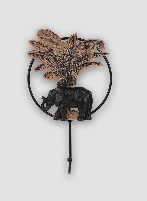 Leve um toque de aventura para a sua decoração com este gancho temático. Inspirado na vida selvagem, o design apresenta um elefante imponente sob a sombra de uma palmeira, emoldurados por um aro circular moderno.