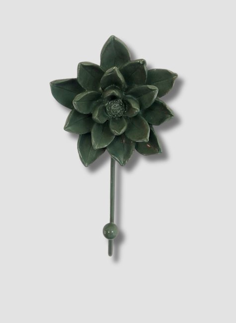 Traga a serenidade da natureza para dentro de casa com este gancho exclusivo. Inspirado na beleza da Flor de Lótus, ele apresenta camadas de pétalas esculpidas em um tom profundo de verde floresta, conferindo um ar de sofisticação e calma ao ambiente.