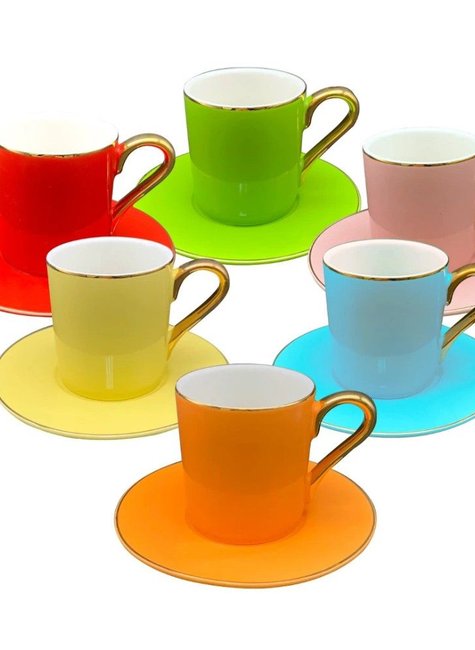 Cada xícara é uma expressão de cor e sofisticação, combinando perfeitamente com seu respectivo pires em uma paleta de 6 tons exclusivos.