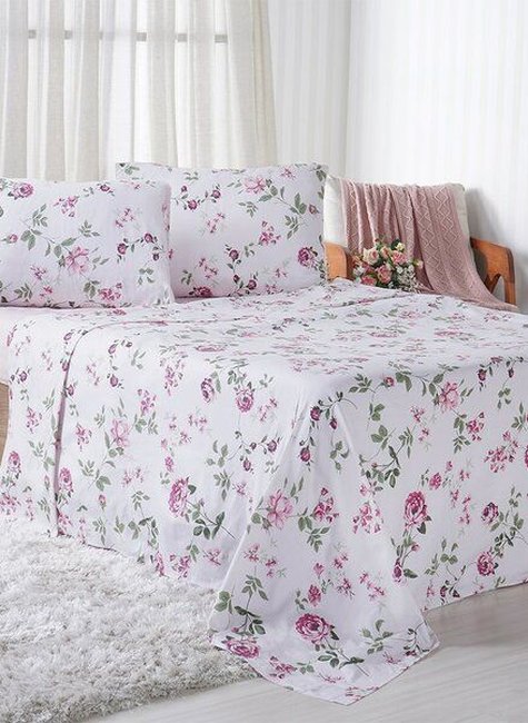 Confeccionado em 100% algodão com 150 fios, o conjunto proporciona um toque super macio graças ao fio penteado. O jogo inclui 1 sobre lençol de 230x240cm, 1 lençol com elástico de 158x198x30cm e 2 fronhas de 50x70cm. Para garantir a durabilidade e manutenção da maciez, recomenda-se evitar produtos à base de cloro, secadora e lavar separadamente de outros tipos de tecidos.