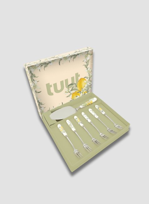 Transforme a hora da sobremesa em um momento de puro encanto. Este conjunto de 7 peças é a escolha perfeita para servir bolos, tortas e doces com sofisticação e estilo. Composto por uma espátula e seis garfos, cada peça possui um cabo trabalhado em tom marfim, que oferece um toque clássico e confortável ao manuseio.