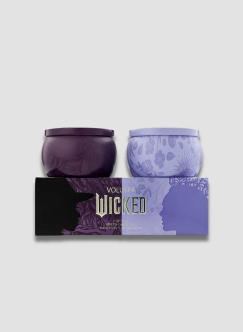 Como duas metades de um coração, estas fragrâncias se completam em perfeita harmonia. Cada uma possui uma personalidade distinta, uma luminosa e sonhadora e a outra, mística e poderosa, mas juntas criam uma história única. Este é o dueto perfeito, celebrando a união dos opostos que se fortalecem. Inspirado na amizade de Elphaba e Glinda, este conjunto inclui as mini velas em lata Glinda’s Cherry Blossom Bubble e Elphaba’s Palo Santo Spells. Porque toda grande amizade tem sua própria magia.