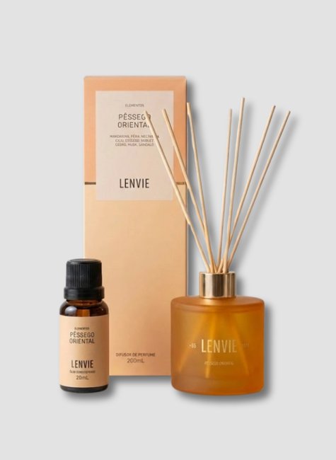 O Difusor de Perfume Pêssego Oriental de 200ml da coleção Elementos, em embalagem de vidro, é perfeito para decorar e perfumar qualquer ambiente. Pêssego Oriental traz o Pêssego como protagonista, com sua doçura suculenta e toque aveludado. As notas de saída trazem a frescura da Mandarina e Nectarina, combinada com a suavidade da Pêra. O coração mistura pétalas de Muguet com Framboesa e Caju, enquanto a base revela a sofisticação das madeiras cremosas e a suavidade do Musk.