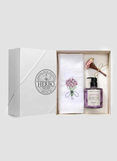 KIt é composto por Sabonete Liquido de 350ml e Toalha de Lavabo bordada.