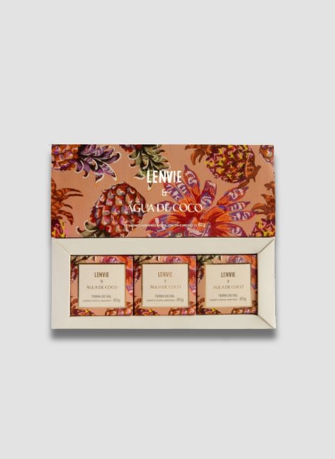 O Kit Sabonete em Barra Terra do Sol, em collab com a Água de Coco, traduz com autenticidade o estilo de vida brasileiro e solar, levando a energia do verão para dentro de casa 365 dias no ano. Sua fragrância envolvente combina a luminosidade da Bergamota e o toque especiado da Noz Moscada com a delicadeza da Peônia e da Magnólia. Finalizada com a sofisticação do Musk e do Guaiaco, essa experiência olfativa traz frescor e leveza para o seu dia a dia.