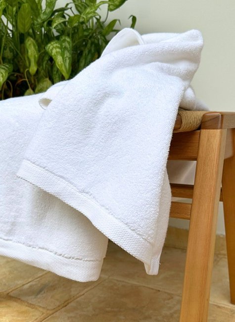 A toalha de rosto, igualmente generosa, possui 50cm x 100cm.