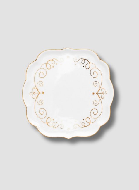 Ilumine sua mesa com o mini pratinho da coleção Royal Winter White. O mini prato é decorado com cachos dourados e borda dourada. Elegante e cheio de estilo!