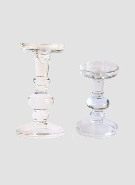 Eleve a decoração dos seus ambientes com este par de castiçais em vidro transparente, perfeito para compor mesas, aparadores, estantes e cenários especiais. Cada peça apresenta um design clássico com detalhes torneados, proporcionando um toque sofisticado e atemporal à sua decoração.
