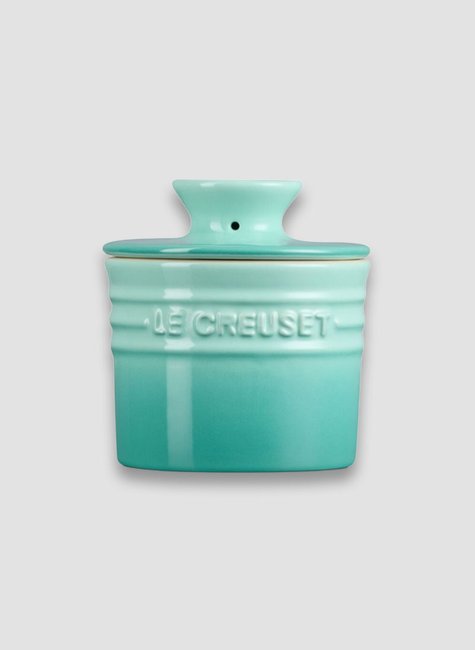 O Pote de Manteiga tem sido usado em partes da Europa que datam da Idade Média, muito antes de uma refrigeração confiável estar disponível. Estes recipientes de cerâmica herméticos evitam que a manteiga estrague, mantendo-a a uma temperatura razoável. O Pote de Manteiga em cerâmica da Le Creuset é inspirado em designs clássicos de mantegueira, bloqueando o ar que pode estragar a manteiga, enquanto se aproxima da temperatura ambiente para mantê-la macia sem derreter.