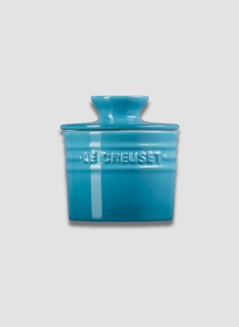 O Pote de Manteiga tem sido usado em partes da Europa que datam da Idade Média, muito antes de uma refrigeração confiável estar disponível. Estes recipientes de cerâmica herméticos evitam que a manteiga estrague, mantendo-a a uma temperatura razoável. O Pote de Manteiga em cerâmica da Le Creuset é inspirado em designs clássicos de mantegueira, bloqueando o ar que pode estragar a manteiga, enquanto se aproxima da temperatura ambiente para mantê-la macia sem derreter.