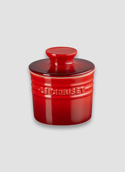 O Pote de Manteiga tem sido usado em partes da Europa que datam da Idade Média, muito antes de uma refrigeração confiável estar disponível. Estes recipientes de cerâmica herméticos evitam que a manteiga estrague, mantendo-a a uma temperatura razoável. O Pote de Manteiga em cerâmica da Le Creuset é inspirado em designs clássicos de mantegueira, bloqueando o ar que pode estragar a manteiga, enquanto se aproxima da temperatura ambiente para mantê-la macia sem derreter.