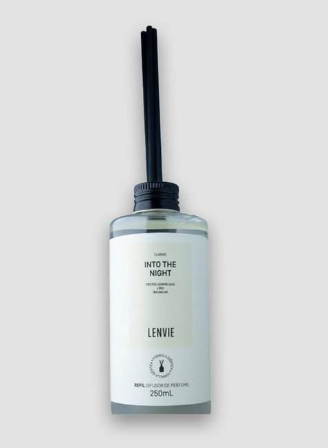 O Refil Difusor de Perfume Into The Night 250ml, ideal para a reposição do líquido no frasco do difusor, sendo uma opção prática e sustentável.