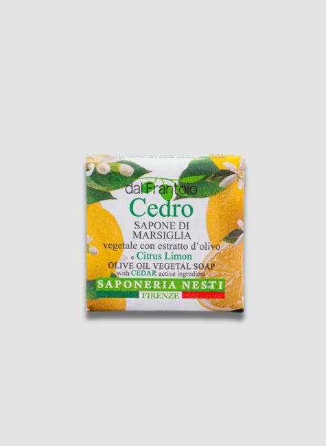 Sabonete vegetal natural, enriquecido com o precioso extrato de oliva e com o princípio ativo do cedro, com propriedades antioxidantes e rico em vitamina C. Hidrata a pele, deixando-a fresca e firme.