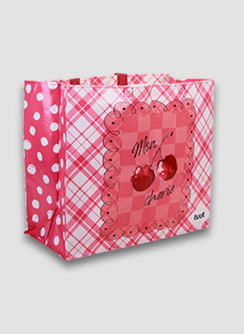 O detalhe central com a ilustração de cerejas dá um toque final de charme. Perfeita para carregar suas compras com segurança e uma ótima alternativa ecológica para o seu cotidiano.