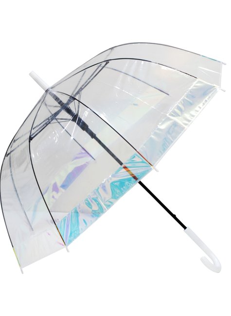 Dê um toque de estilo e modernidade aos seus dias de chuva com esta incrível sombrinha transparente! Com um design único, ela combina a praticidade do material transparente, que permite ver por onde você anda, com um deslumbrante detalhe holográfico na borda que muda de cor conforme a luz. Leve e resistente, possui um cabo branco curvado que garante um manuseio confortável. Mais do que apenas um acessório para se proteger da chuva, esta sombrinha é uma verdadeira declaração de moda, perfeita para quem adora um visual futurista e cheio de personalidade. Ideal para compor looks incríveis e tirar fotos espetaculares, mesmo com o tempo fechado.