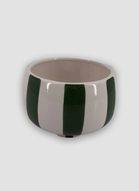 O padrão de listras largas em verde floresta e branco traz um toque de frescor e elegância, combinando tanto com decorações rústicas quanto contemporâneas. Ideal para alegrar o parapeito da janela, a mesa de centro ou a estante.