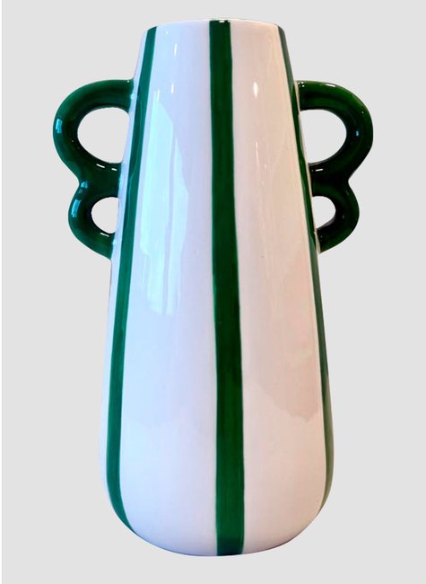 Este vaso é uma verdadeira obra de arte artesanal, unindo a simplicidade das listras clássicas a um toque lúdico e contemporâneo. Com suas alças orgânicas e visual vibrante, é uma peça-chave para quem deseja adicionar alegria e personalidade ao décor.