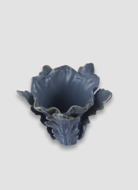 O acabamento em tonalidade azul acinzentada com leve efeito envelhecido confere personalidade e versatilidade, combinando perfeitamente com decorações clássicas, modernas ou rústicas. Compacto e cheio de estilo, pode ser usado tanto como suporte para pequenos arranjos florais quanto como objeto decorativo independente.
