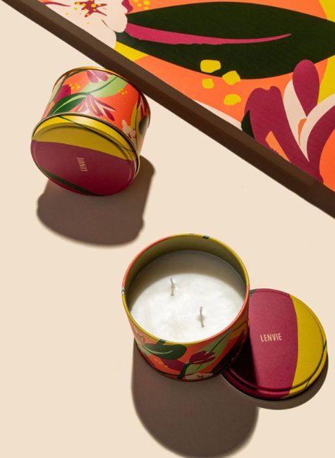 Criada com um olhar modernista pela designer e ilustradora Maria Ruth Jobim, a edição especial da Vela Perfumada Lata Magnólia Pacífica 250g é representada com tons vibrantes, alegres e com a cara do verão, traduzindo a essência da vela. Buscamos enaltecer formas, cores e a experiência olfativa através da queima com dois pavios que proporcionam maior performance. Além disso, as luzes das chamas promovem aconchego e charme para o ambiente.