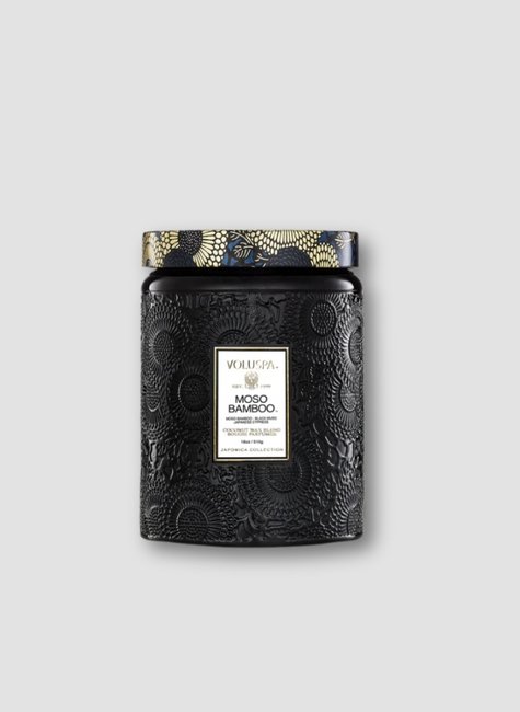 Apresentamos a nossa vela de 510g, a expressão máxima de arte e performance olfativa. Habilmente acondicionada em um imponente recipiente de vidro com relevo, esta peça é um verdadeiro objeto de design. A vela é coroada por uma tampa de metal finamente adornada com os detalhes icônicos da coleção Japonica, um toque de arte que protege a cera da poeira e preserva a fragrância com elegância.